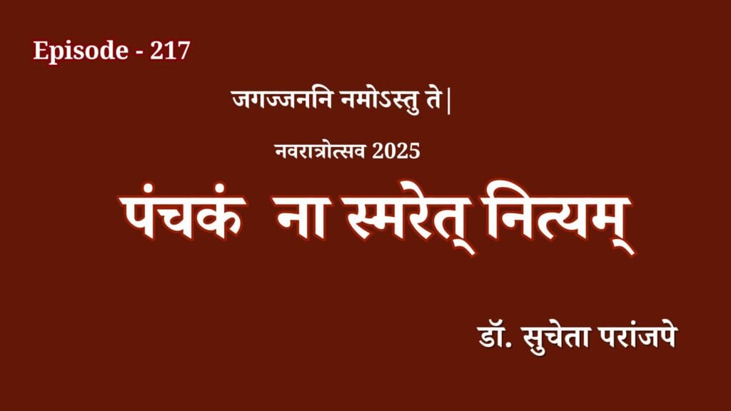 Episode-217 – Panchakam Na Smareta Nityam – Dr Sucheta Paranjpe – Nivratrotsava-2025 Episode-217 – Panchakam Na Smareta Nityam – Dr Sucheta Paranjpe – Nivratrotsava-2025 Read More »