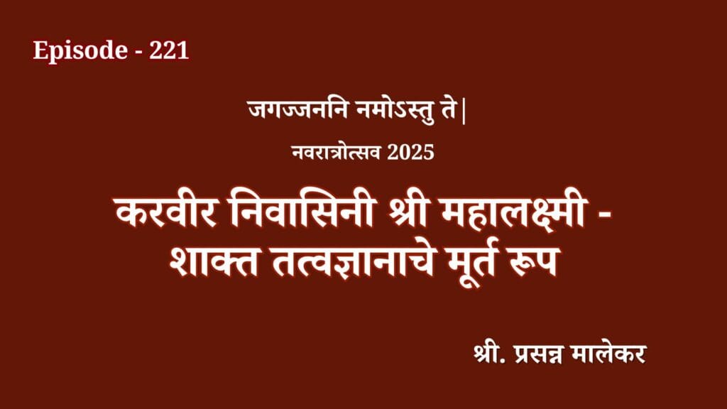 Episode-221 – Karvir Nivasini Shri Mahalakshmi – Shakta Tatvadnyanyache Murta Swaroop – Adv Prasanna Malekar Episode-221 – Karvir Nivasini Shri Mahalakshmi – Shakta Tatvadnyanyache Murta Swaroop – Adv Prasanna Malekar Read More »